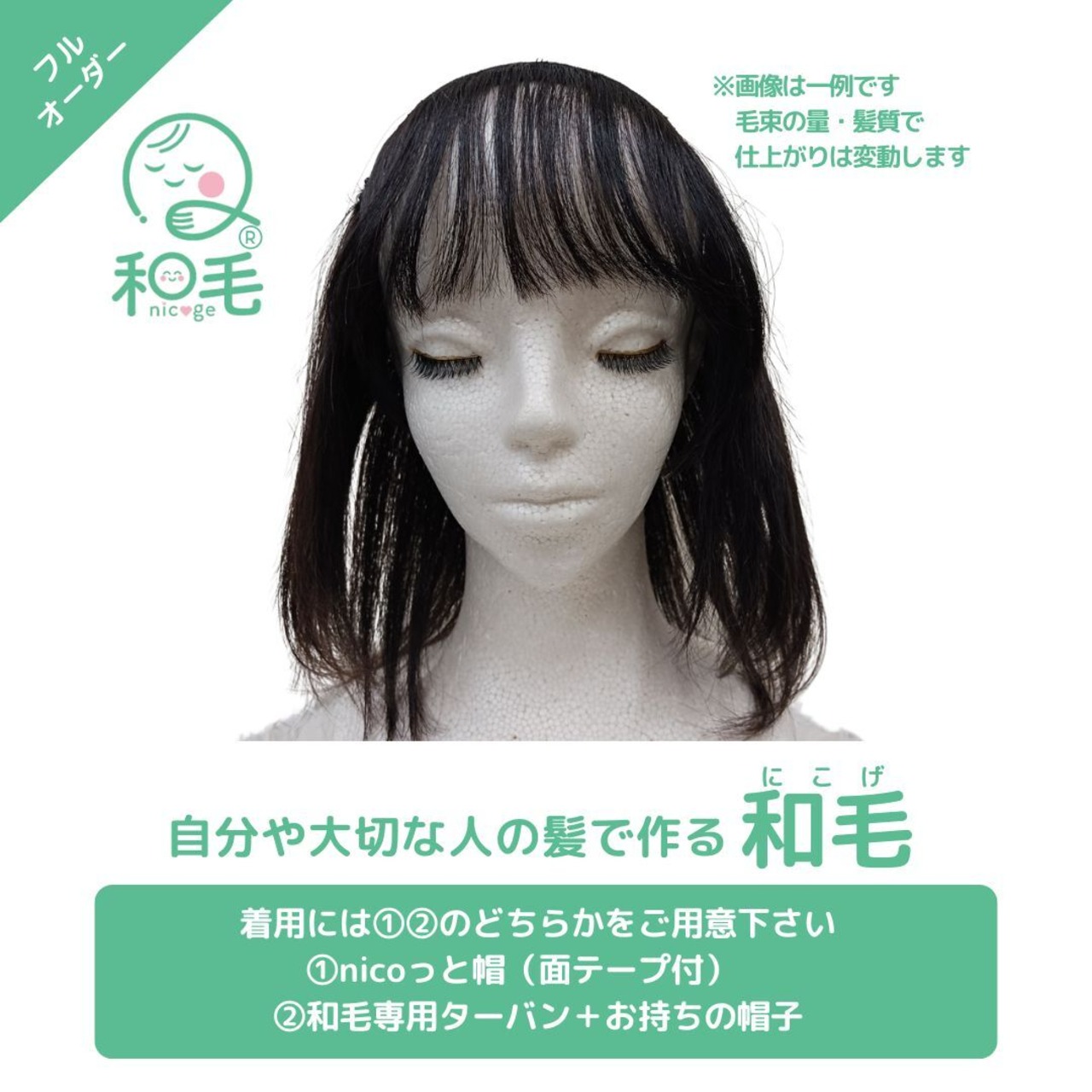 自分や大切な人の髪「和毛(にこげ)」で作るワンタッチエクステタイプのオリジナルウィッグです。