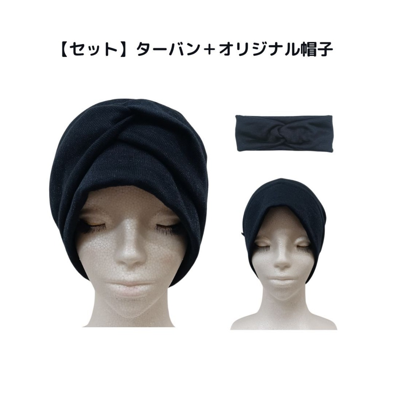 洗い替え用オリジナル帽子【ブラック】とターバン(ブラック)のセット。